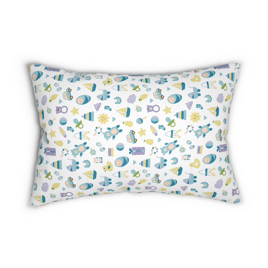 Whimsical Space-Themed Lumbar Pillow for Kids' Rooms - Gift for Astronaut Lovers, Playroom Accent, Cosmic Home Decor