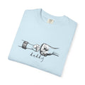 A softly washed, heavyweight tee that carries a quiet, sentimental message. This relaxed-fit shirt feels lived-in from the first wear thanks to garment-dyed, ring-spun cotton and a tubular knit that lays smooth and clean. The minimalist sketch on the chest — a tiny fist bump between parent and child with the handwritten “daddy” beneath — reads like a private memory. It works as daily wear for slow mornings with coffee, backyard playtime, or low-key family gatherings. The sewn-in label and double-needle seams mean it stands up to repeated washes and hugs without losing shape. Choose from many muted, vintage-ready colors to match that worn-in, personal look.