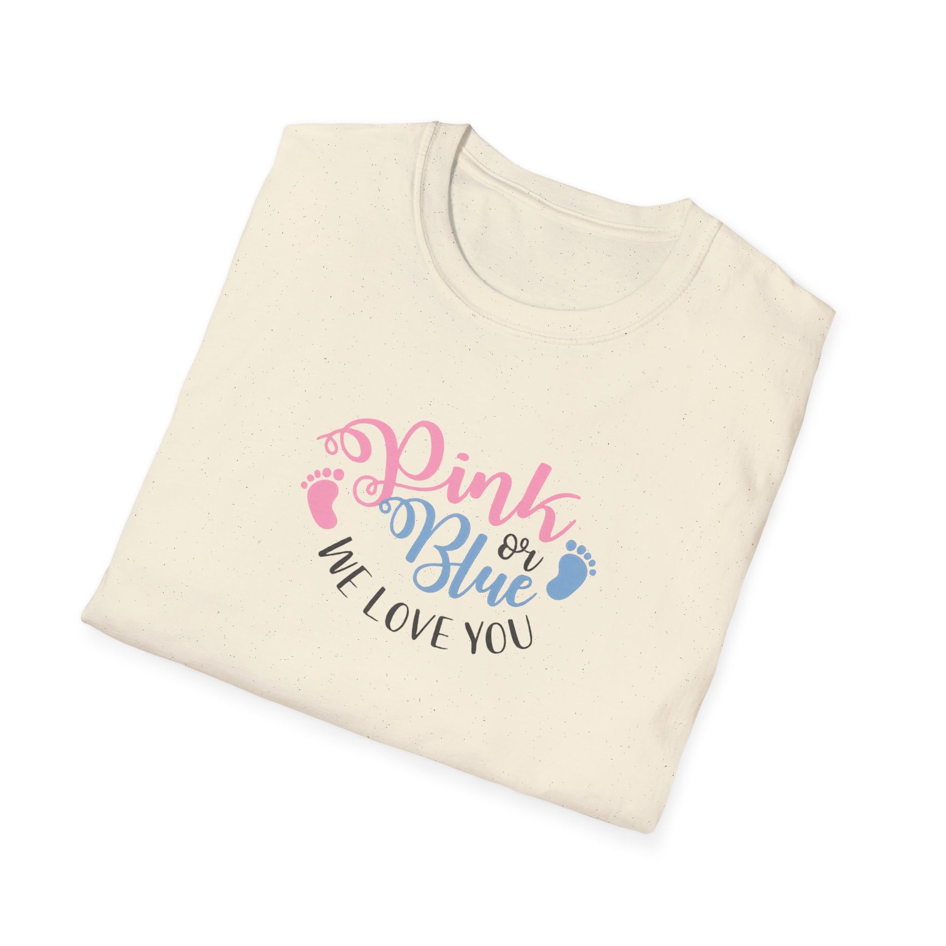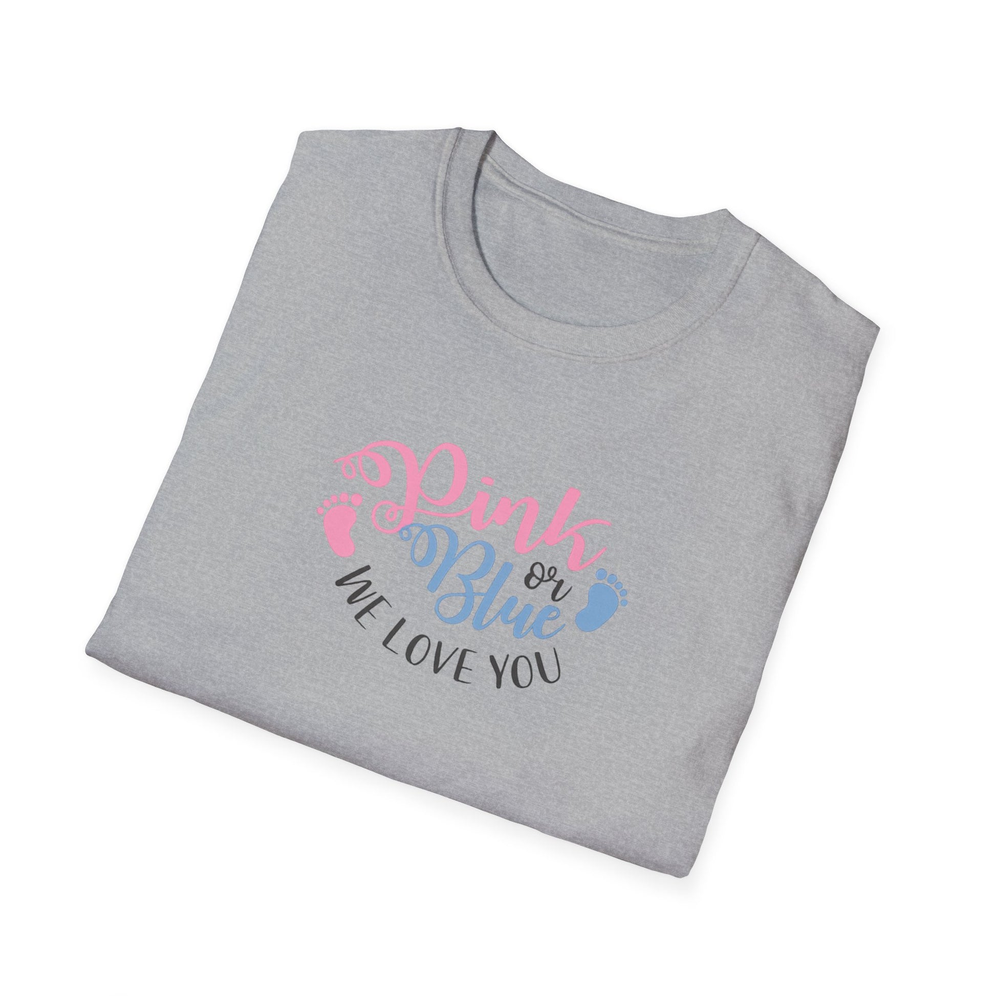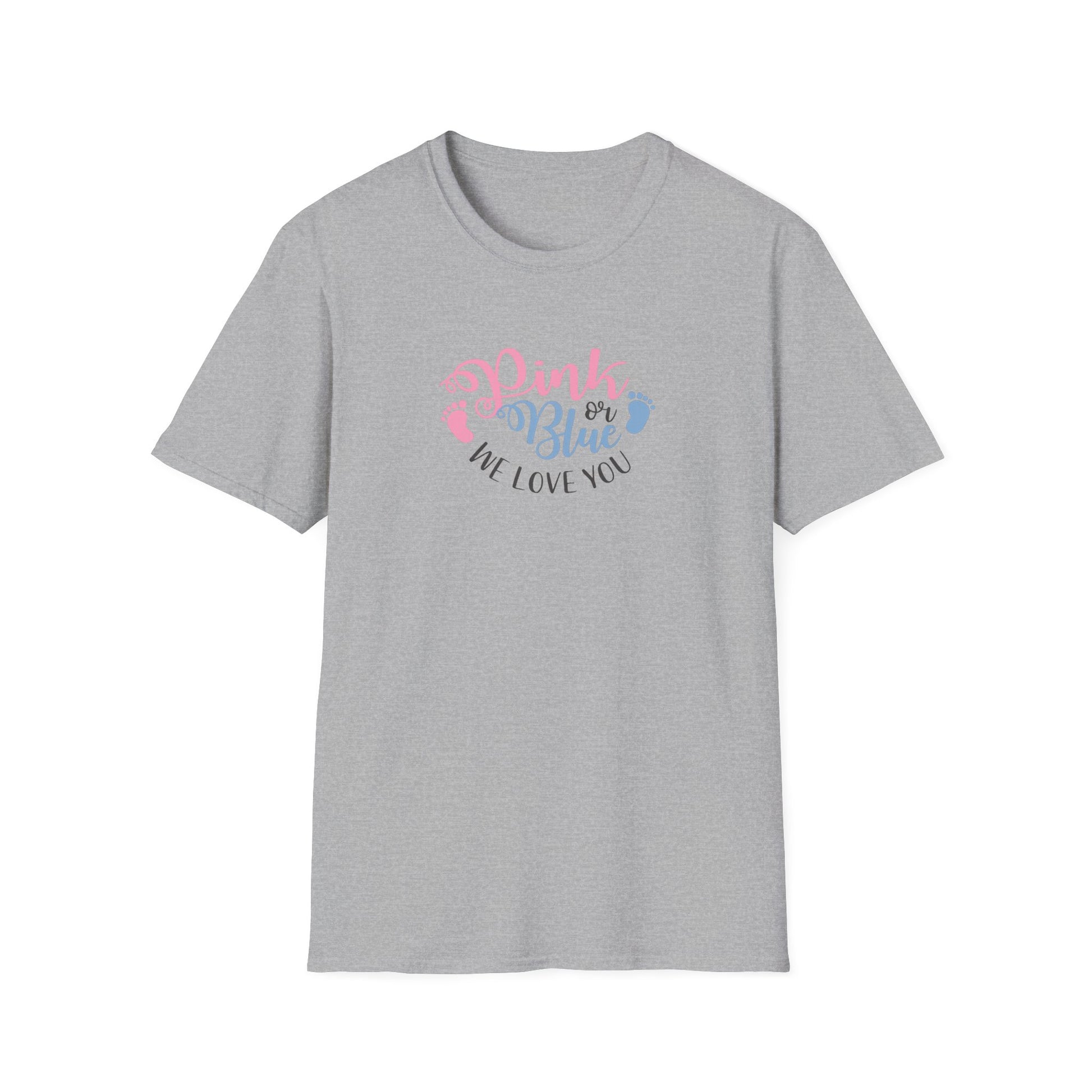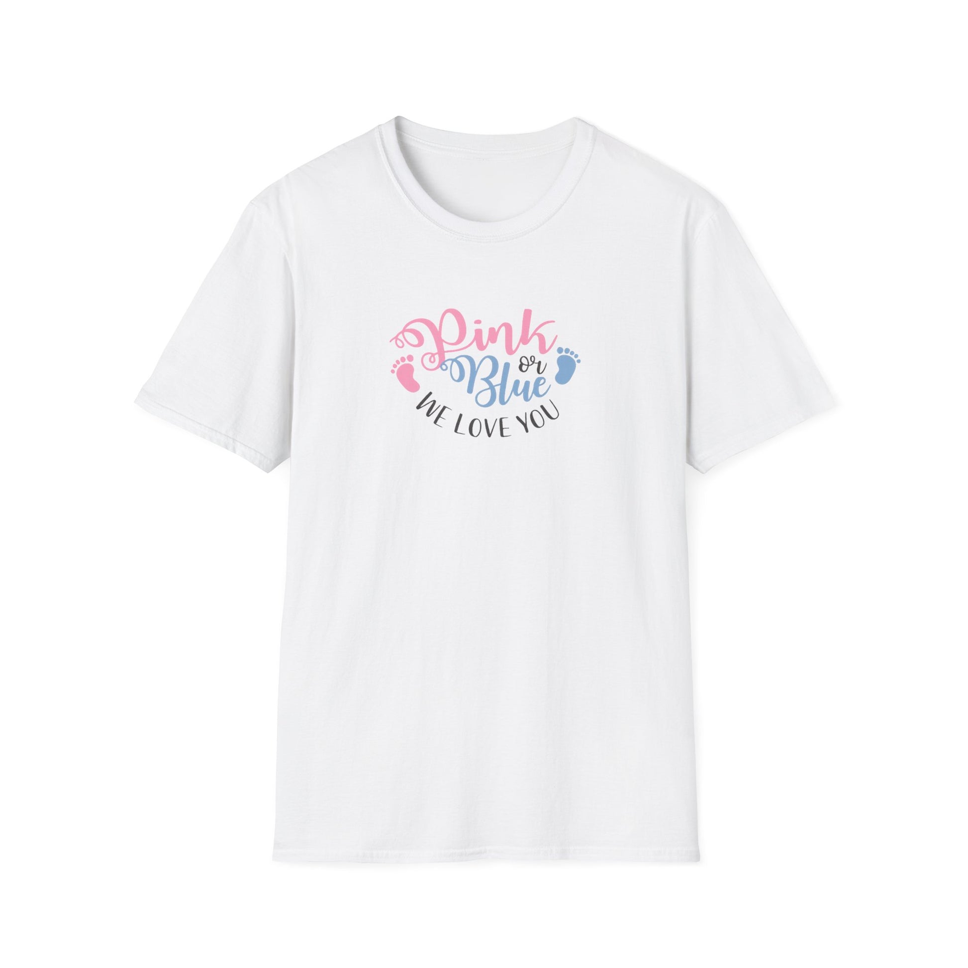 Gender Reveal T-Shirt - "Pink or Blue, We Love You" Baby Announcement Tee