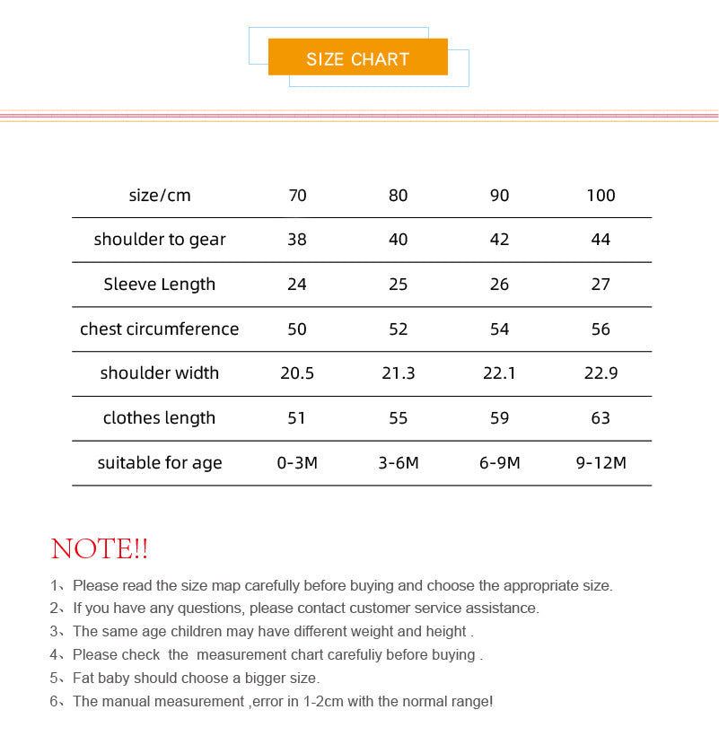 Size / Measurement | Shoulder to Gear (cm) | Sleeve Length (cm) | Chest Circumference (cm) | Shoulder Width (cm) | Clothes Length (cm) | Suitable for Age |