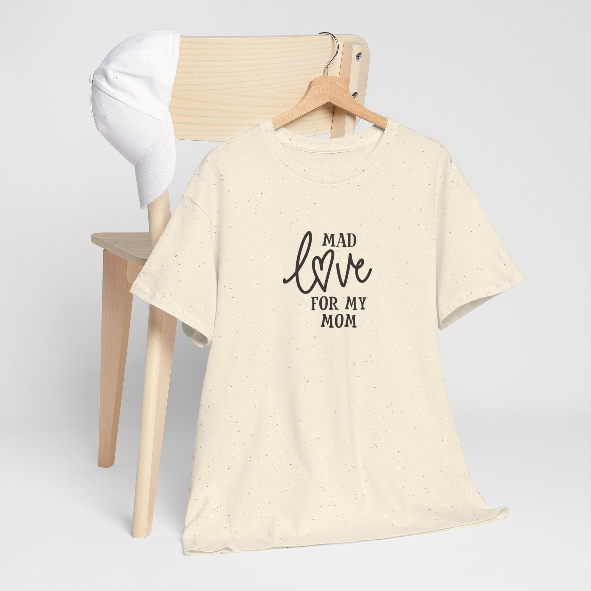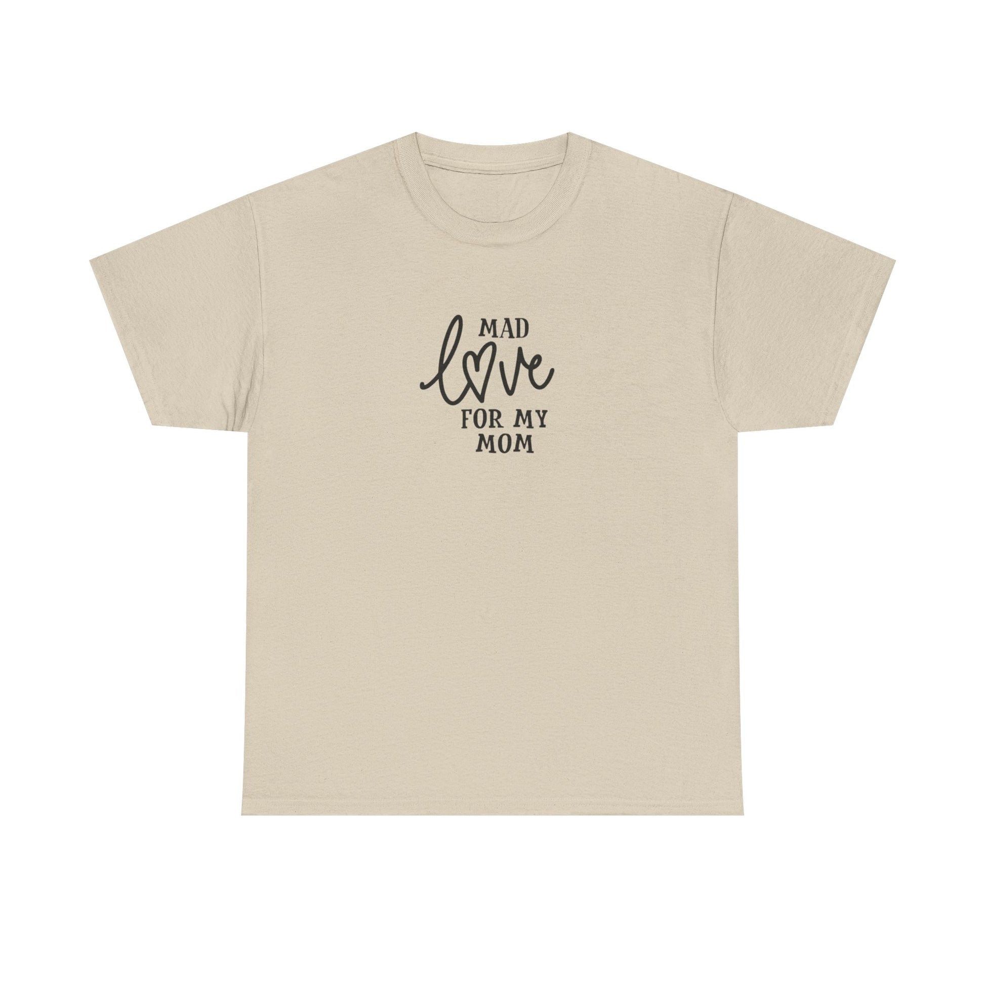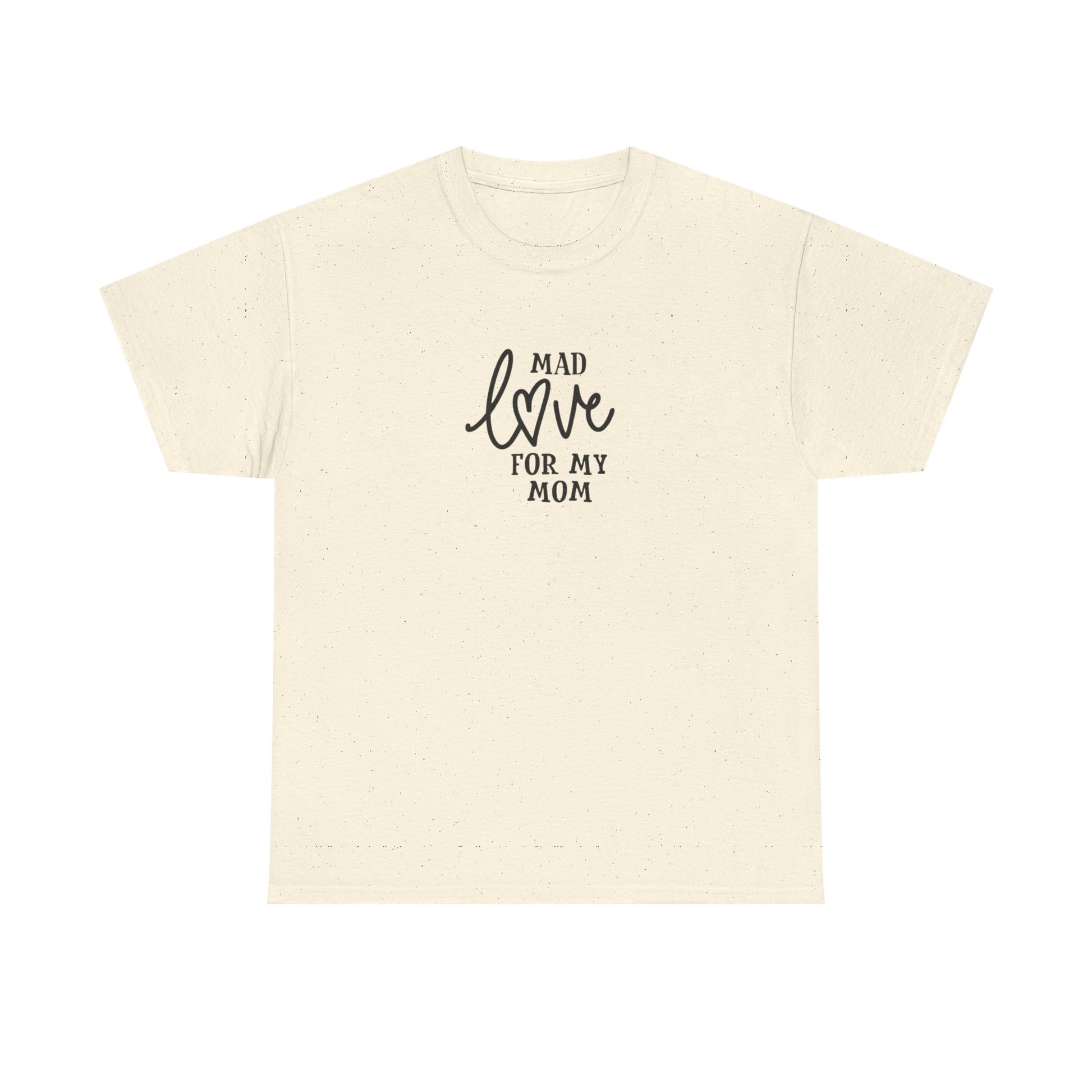 Soft, simple, and sincere — this cotton tee carries a quiet message: “Mad love for my mom.” Lightweight but sturdy, it wears in gently and keeps its shape. The centered, hand-lettered script sits modestly on the chest so the sentiment reads like a personal note rather than a loud slogan. Wear it on slow Sunday mornings, family dinners, or while running errands; it layers easily under a cardigan or pairs with worn-in jeans. Made to be easy to live in, this shirt becomes one of those pieces you reach for when you want to feel close to home and to whoever raised you.