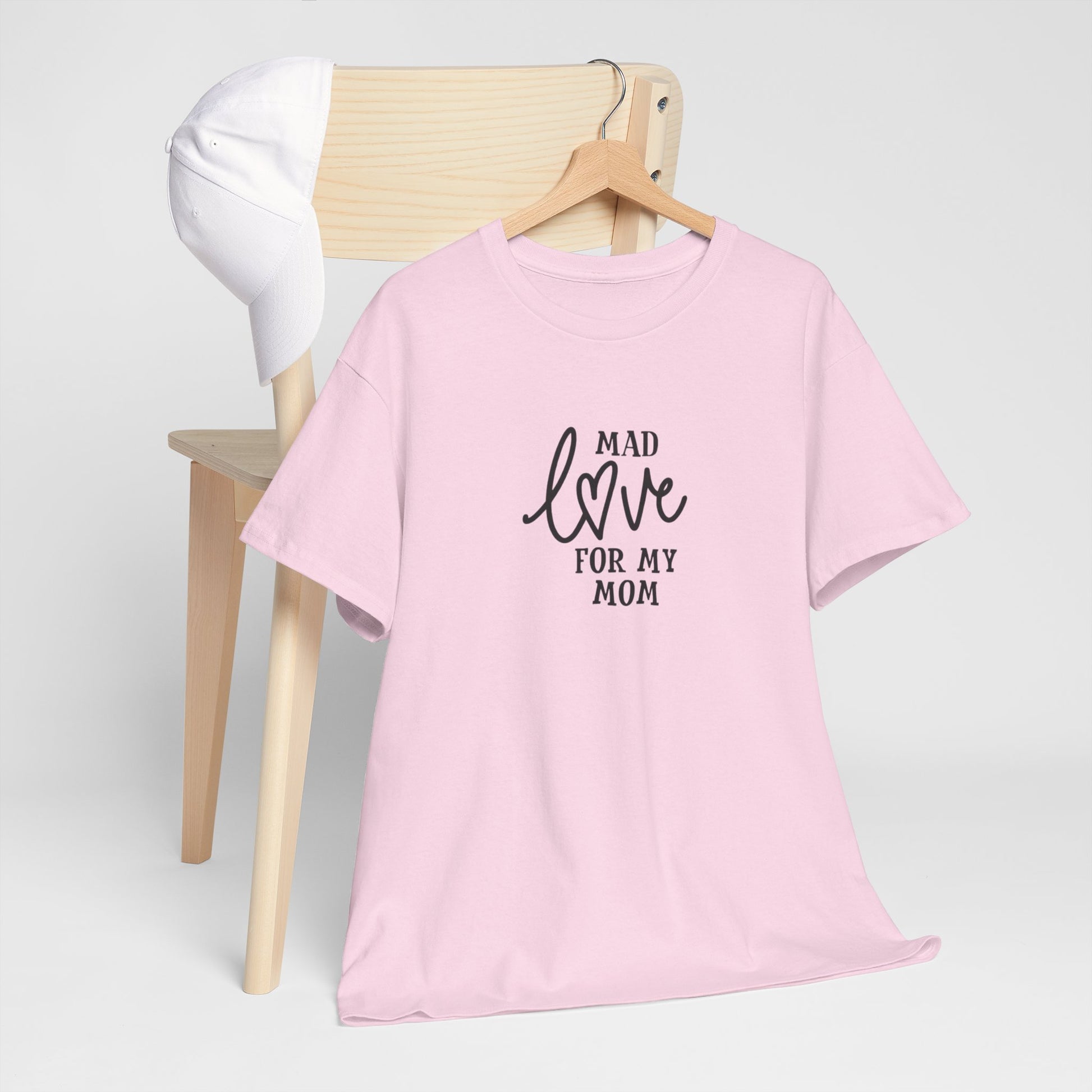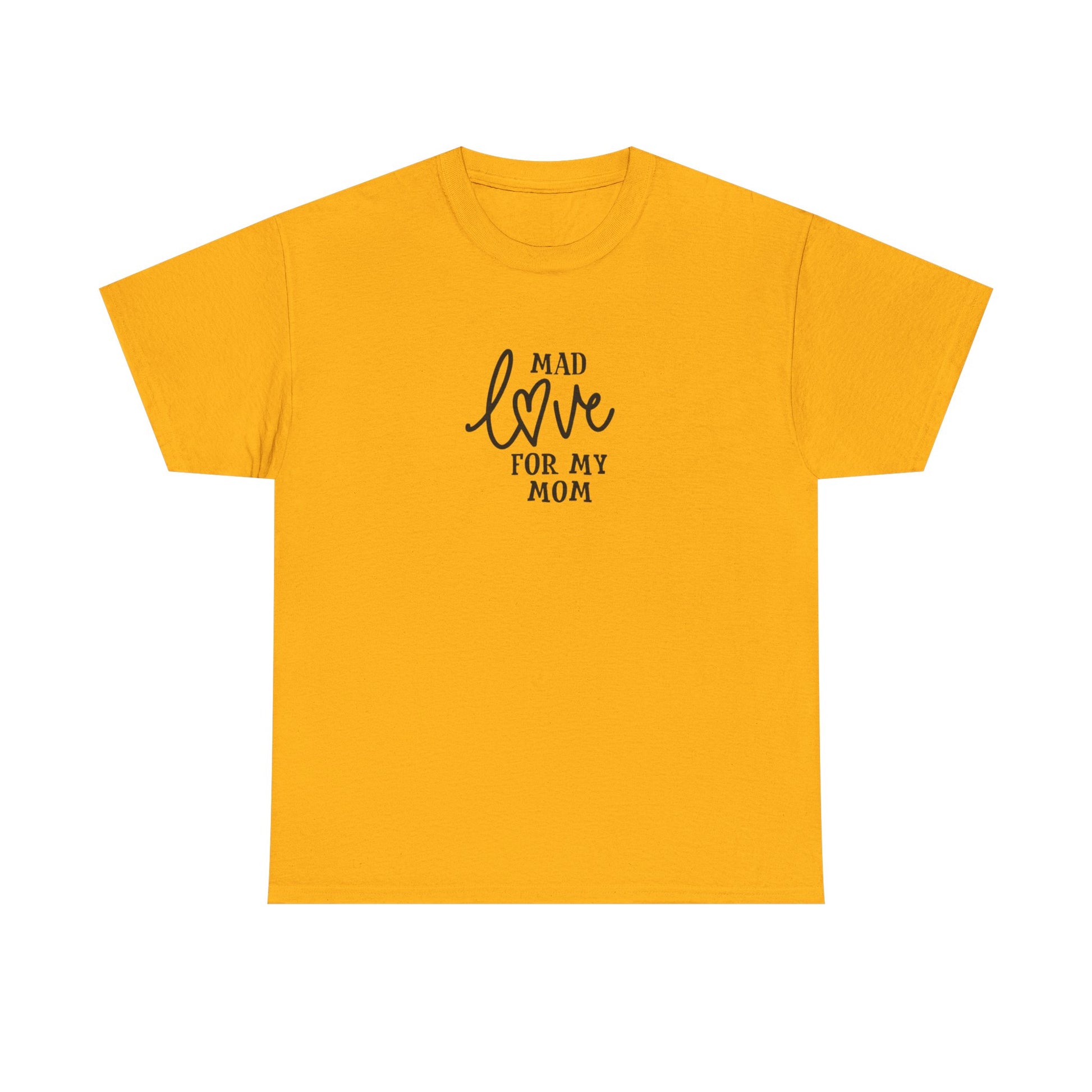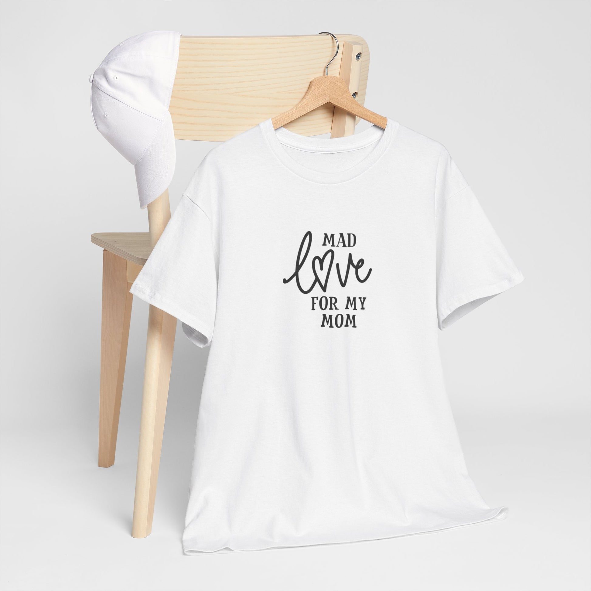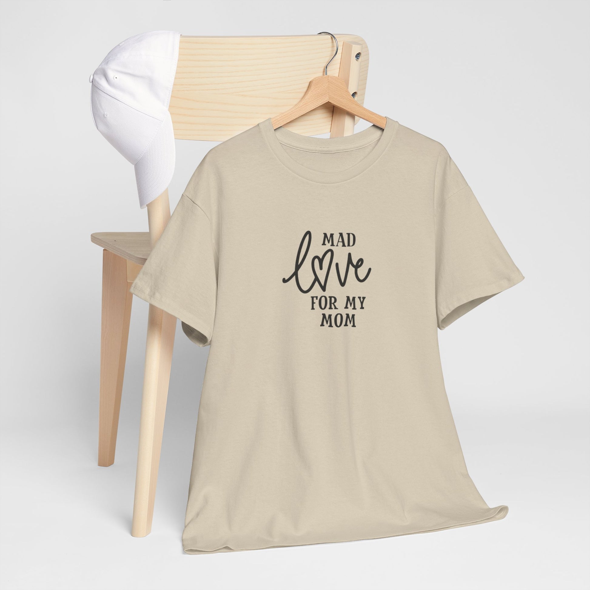 Soft, simple, and sincere — this cotton tee carries a quiet message: “Mad love for my mom.” Lightweight but sturdy, it wears in gently and keeps its shape. The centered, hand-lettered script sits modestly on the chest so the sentiment reads like a personal note rather than a loud slogan. Wear it on slow Sunday mornings, family dinners, or while running errands; it layers easily under a cardigan or pairs with worn-in jeans. Made to be easy to live in, this shirt becomes one of those pieces you reach for when you want to feel close to home and to whoever raised you.
