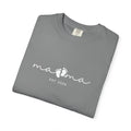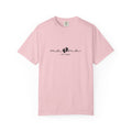 Soft, lived-in comfort with a calm, modern look. This garment-dyed tee feels broken-in from the first wear — the heavyweight cotton has substance without stiffness, and the relaxed fit drapes easily over everyday movement. A subtle, scripted front print reads like a personal note, giving the shirt a quiet, affectionate vibe that works at home, on morning walks, or layered under a cardigan for a cozy outing. The tubular knit and double-needle stitching mean the tee wears well over time. Choose from many muted, washed colors to match your daily rhythm.