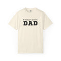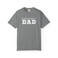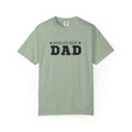 This heavyweight garment-dyed tee carries a quietly confident message — bold block lettering declares “DAD” with a subtle line of text and stars above. The soft, worn-in color and relaxed fit make it feel like a favorite right away. It sits comfortably through weekend projects, backyard barbecues, and slow mornings with coffee, the kind of shirt a dad reaches for when he wants something simple, dependable, and honest. The tubular knit and durable double-needle seams mean it holds up to repeated wear and washings while the pre-shrunk ring-spun cotton keeps the feel substantial without stiffness. Available in a wide range of colors and sizes, it blends classic, straightforward design with everyday comfort — the kind of tee that becomes part of a routine rather than a statement piece.